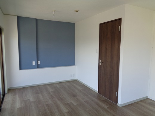 ブルーのアクセントクロスを取り入れ、おしゃれな空間になりました。