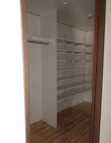 玄関収納はウォークスルータイプのシューズクローク兼クローゼットを導入 しました。