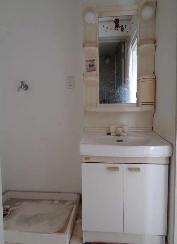 古くなったキッチンや洗面台、建具を全て取り外します。
