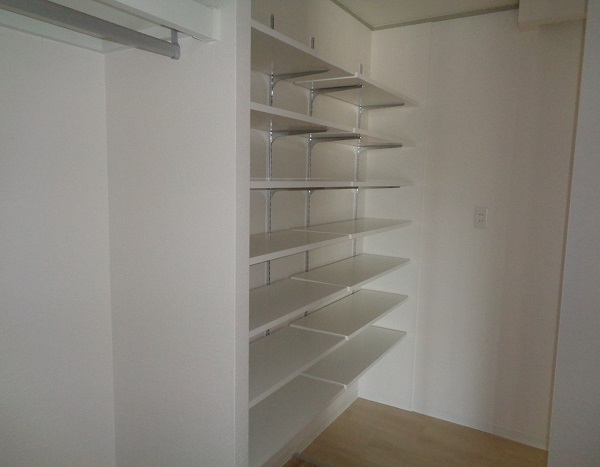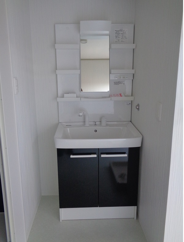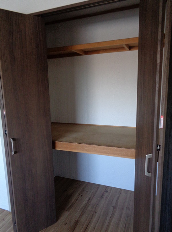 むき出しだった収納は、クロスを張り扉を設置 しました。