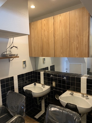 シャンプー台の横で露出していた 配管や機材などが見えなくなり、スッキリとしました。
