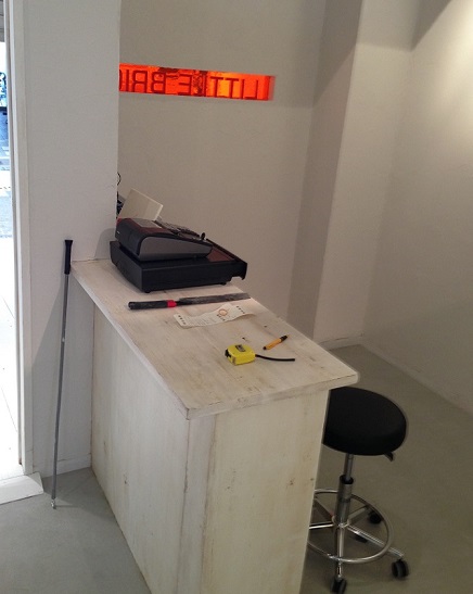 看板代わりのオブジェを壁に埋め込みます。