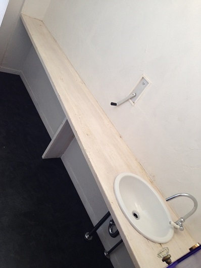 洗髪台の横には上部収納と同じ素材で別の収納を作りました。