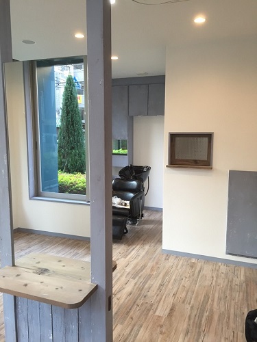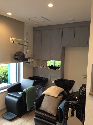 施術スペースはご覧の通り、奥には器具も搬入され、徐々にヘアーサロンらしくなってきました。