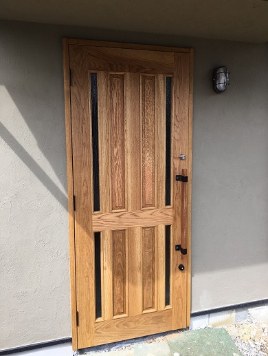 高級感あふれる玄関扉を採用し、夜も落ち着いた雰囲気の仕上がりとなっています。