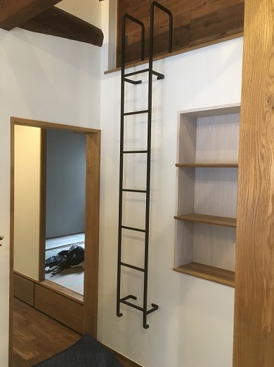 もともとの階段をリメイクし、踏み板にパイン材、手すりはオリジナルのアイアン製としています。