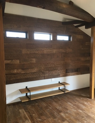 リビングではオーク材をふんだんに利用して仕上げていきます。