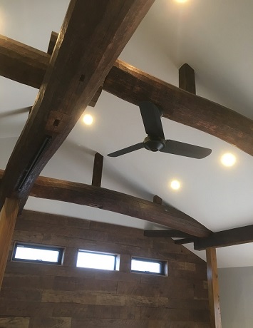 また、もともと天井に隠れていた梁を生かすデザインとするため、勾配天井を採用しました。