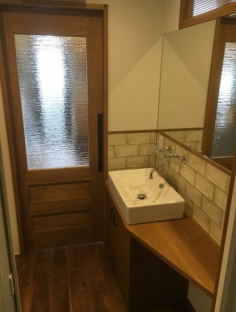 洗面スペースも施主さまこだわりのアンティークなデザインに仕上がりました。
