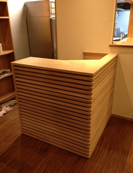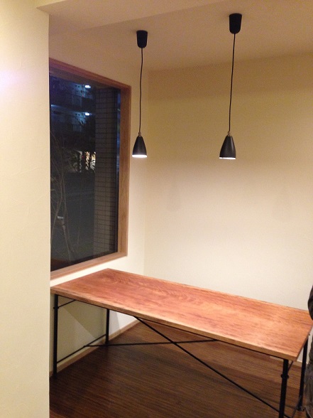 カウンターテーブルもこのように、照明の選択も相まって高級感あふれる仕上がりとなりました。