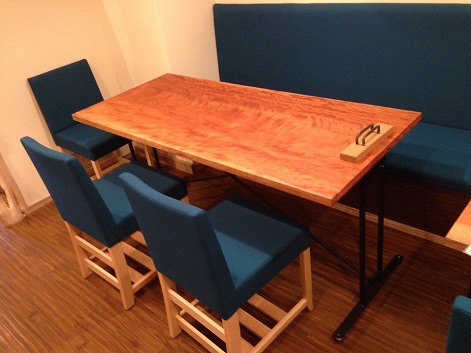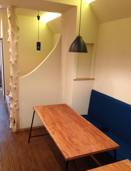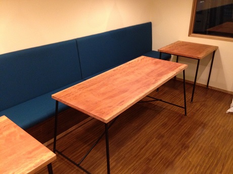 店内のテーブルの素材もすべて一枚ものの木材を使用しています。