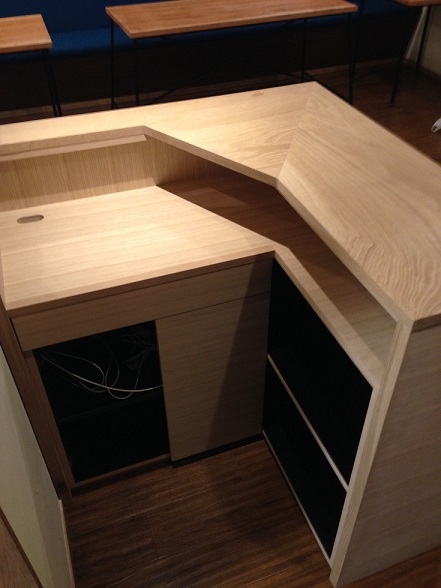 徐々に店内が仕上がってきました。ホウの木の柱が存在感を醸し出しています。